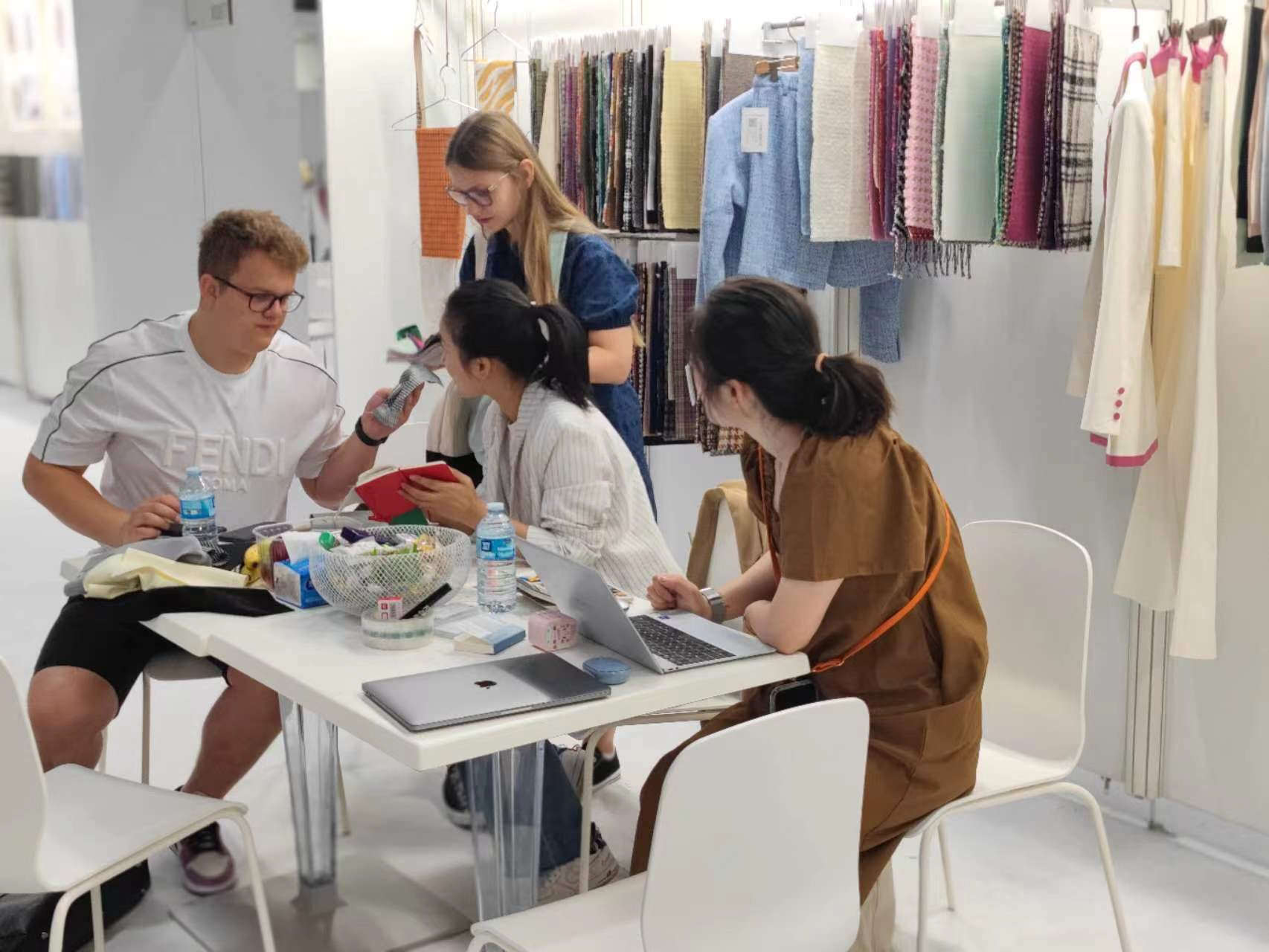 本次展會中,公司設計師從歐洲市場流行趨勢出發(fā),主打當下盛行的麻類、復古色丁和天然棉類等面料品種,并結合3D技術實時看款,幫助客戶感受面料與款式的多元組合。